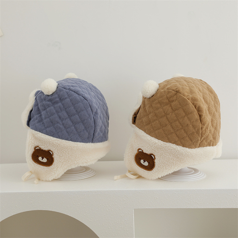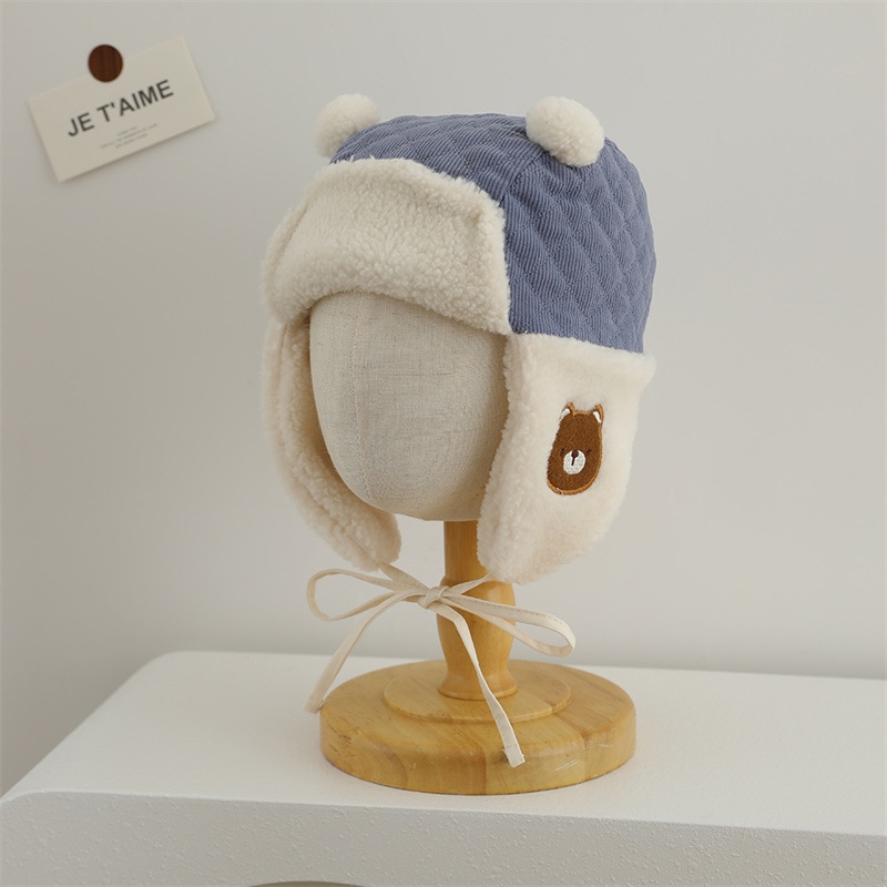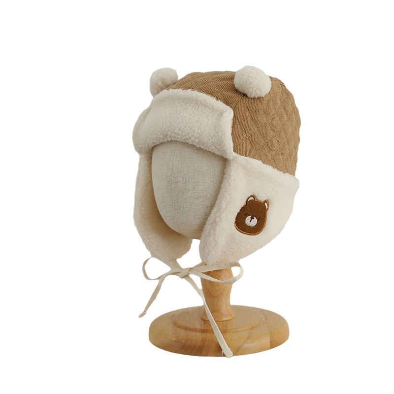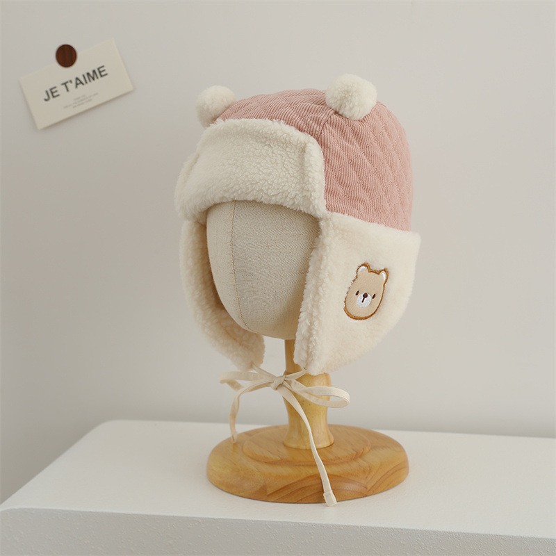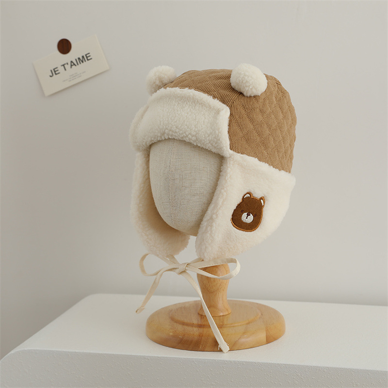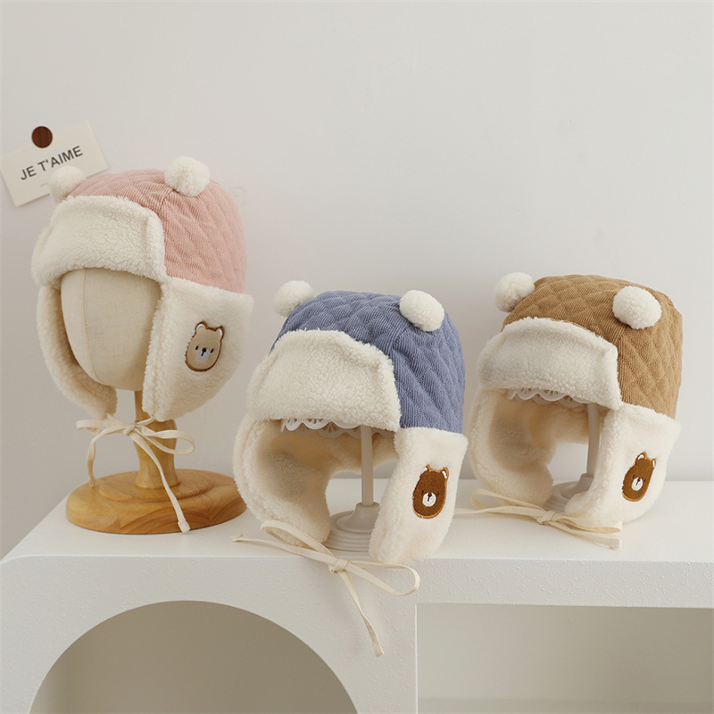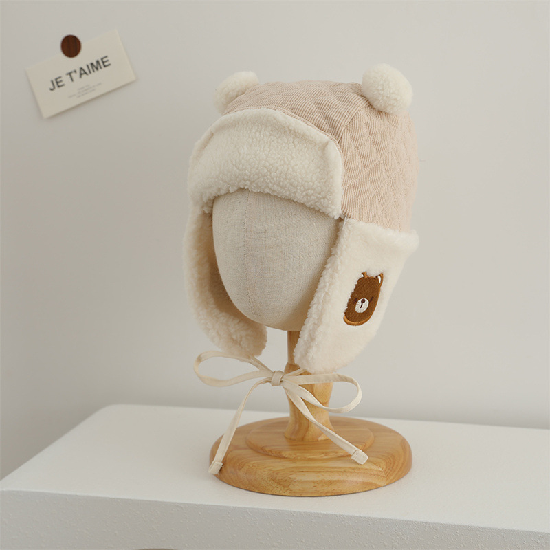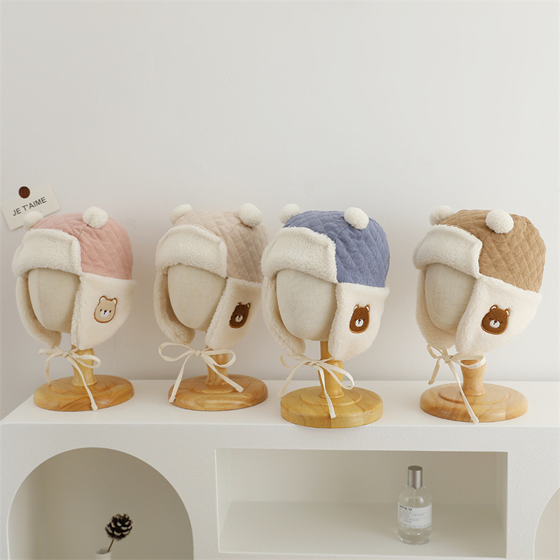 耳当て部分にあしらわれたクマの刺繍が子供らしい愛らしさを演出して親しみやすい印象