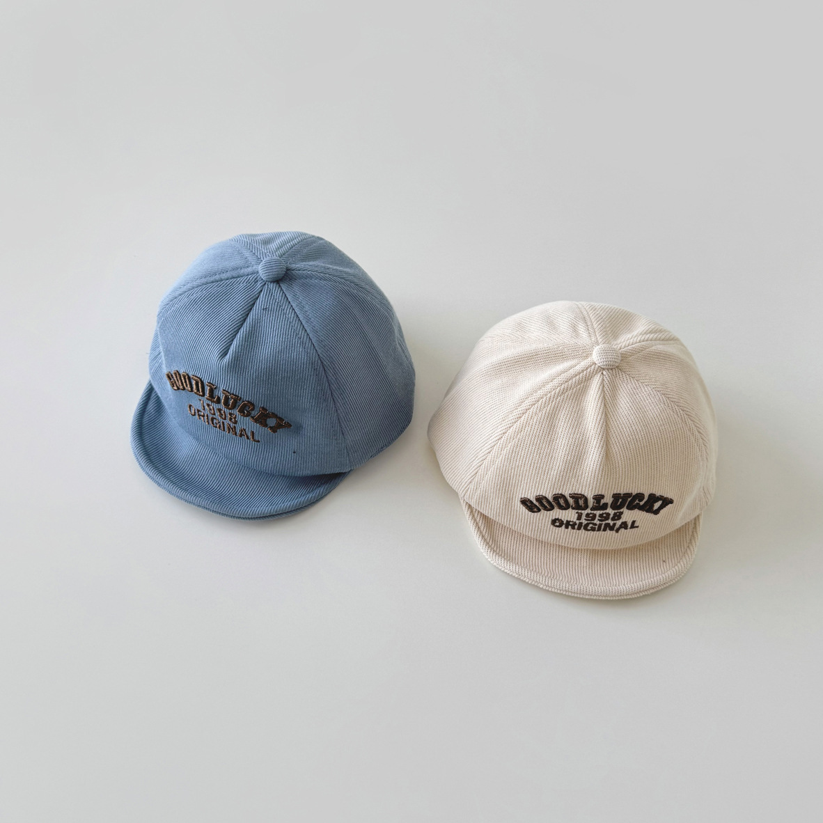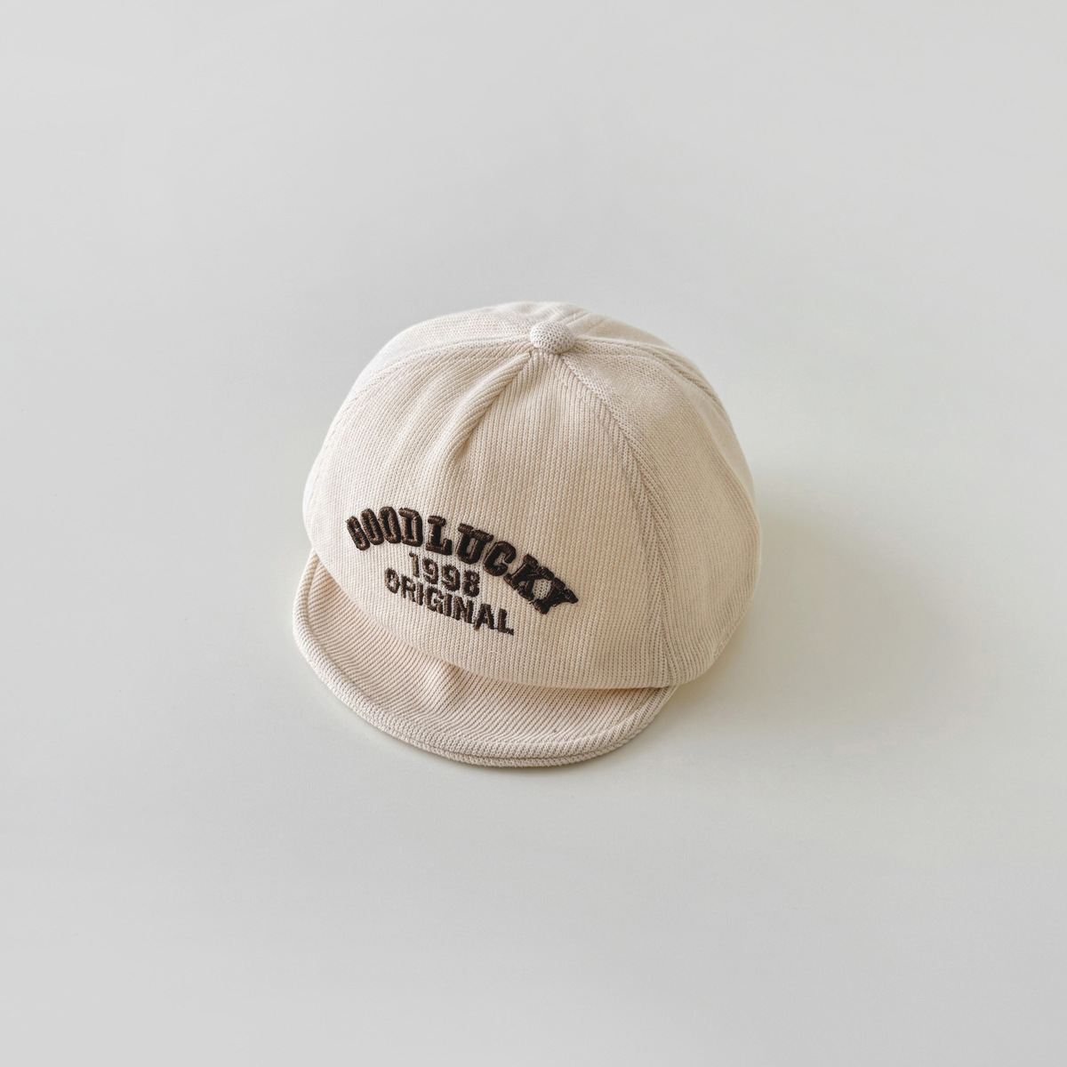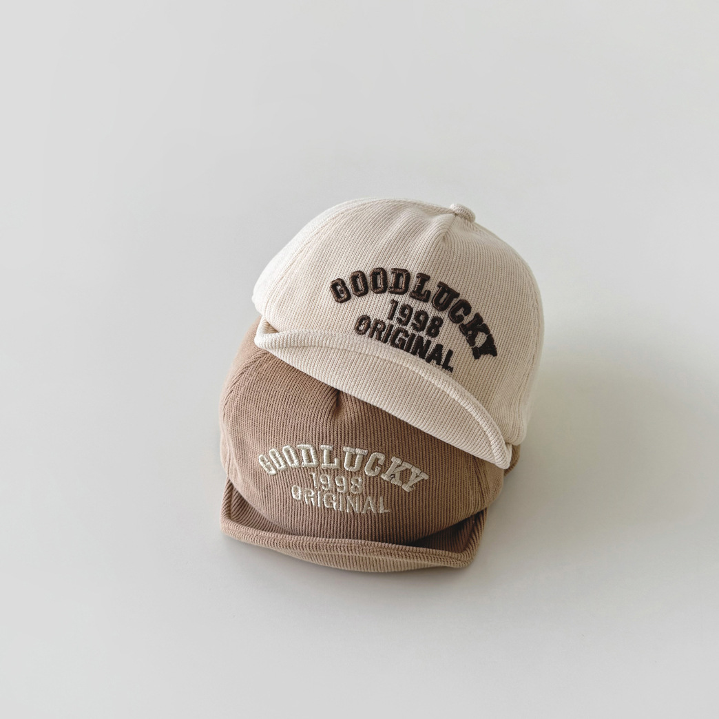 なめらかなコーデュロイ生地が赤ちゃんの頭を包み込み、温かみのある風合いで安心感を与えます。